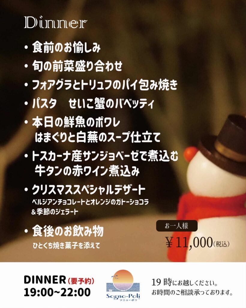 聖なる夜を彩る特別なディナータイムを、ぜひ大切な方とお楽しみください。