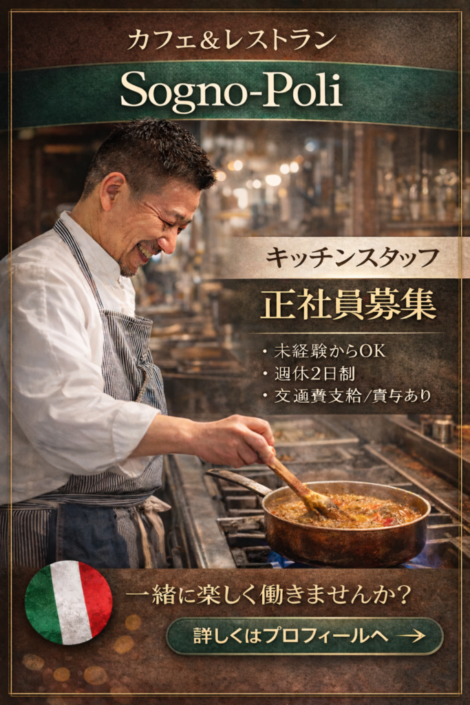 ソニョーポリは今年で10周年。地域に愛されるレストランとして、これから更に一緒に盛り上げてくれる仲間をお待ちしています。